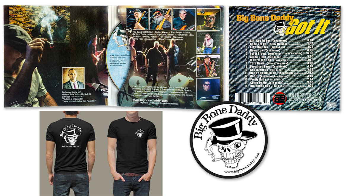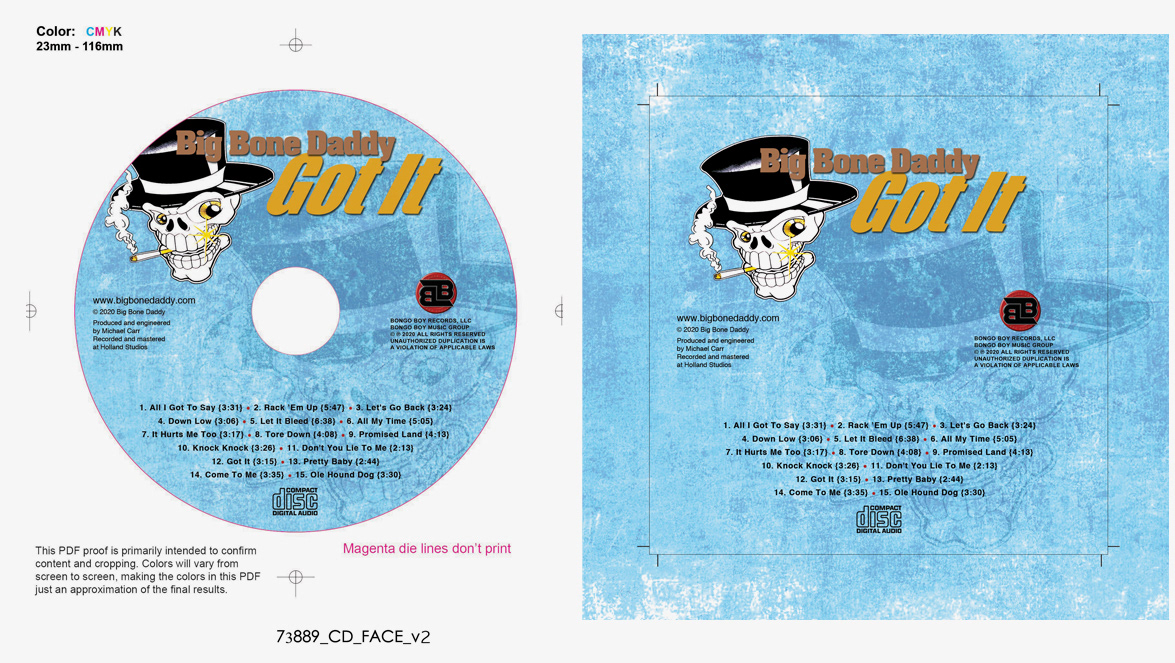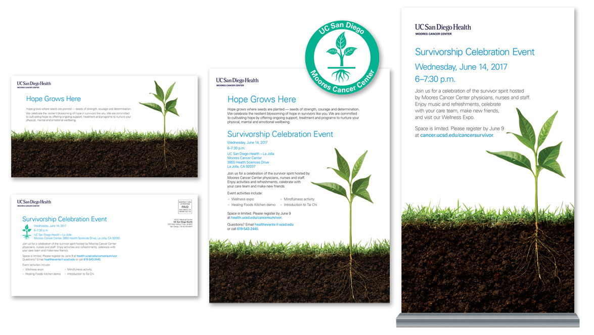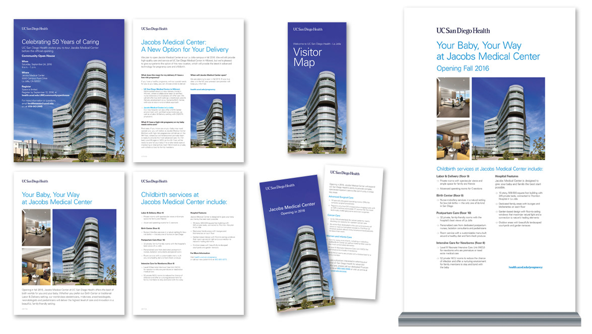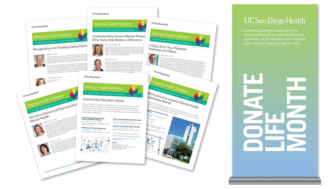 Collateral material for various campaigns: music CD project, pull-up banners, flyers, one-sheets, sales sheets, mailers, and other materials.