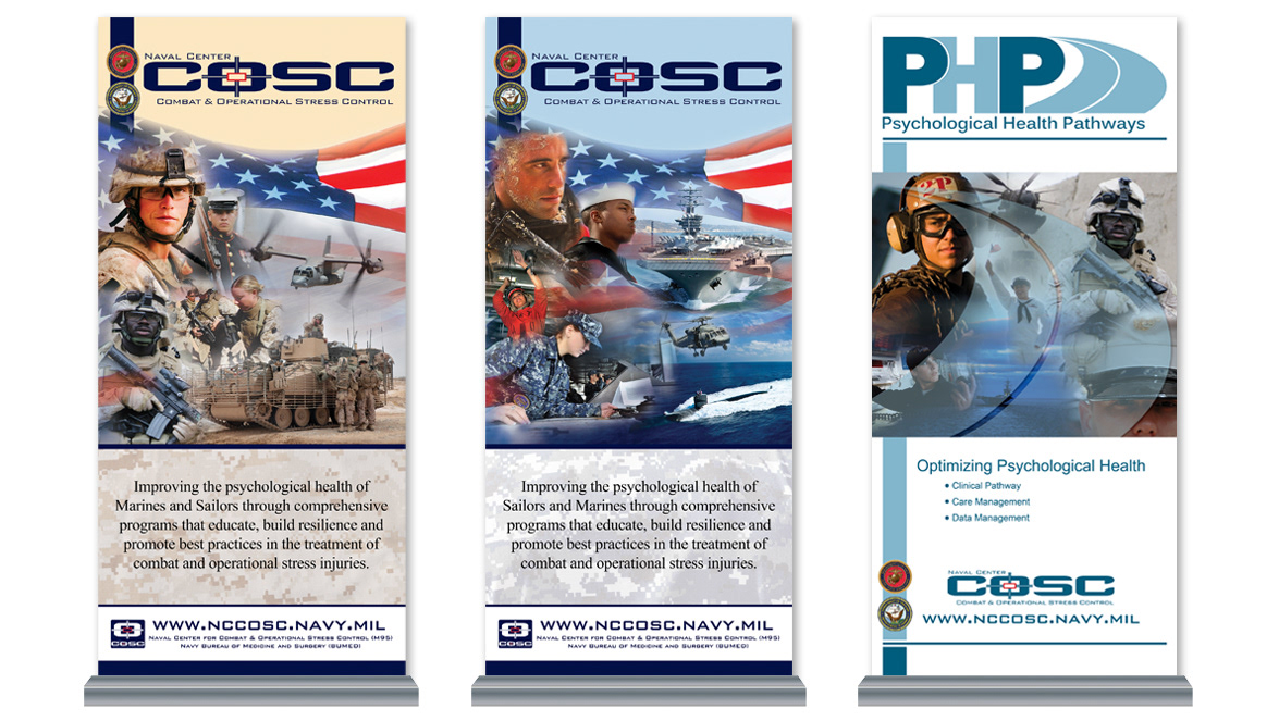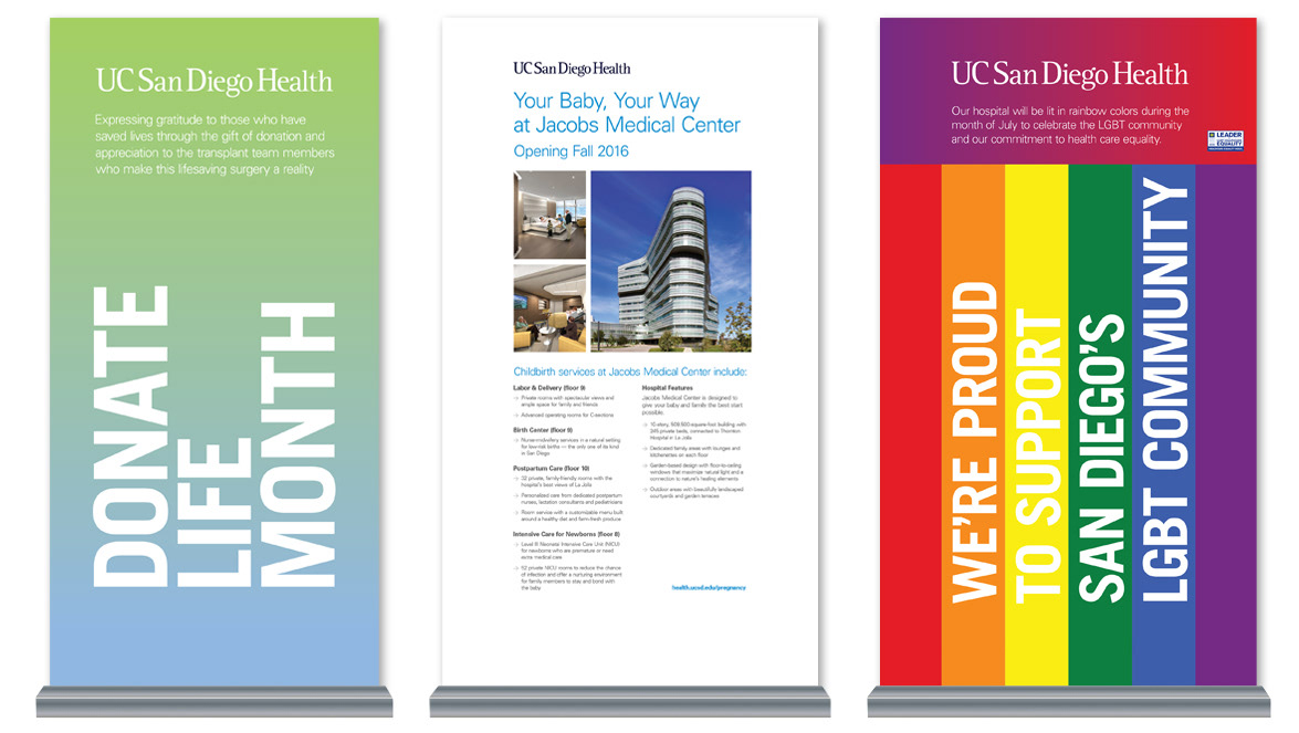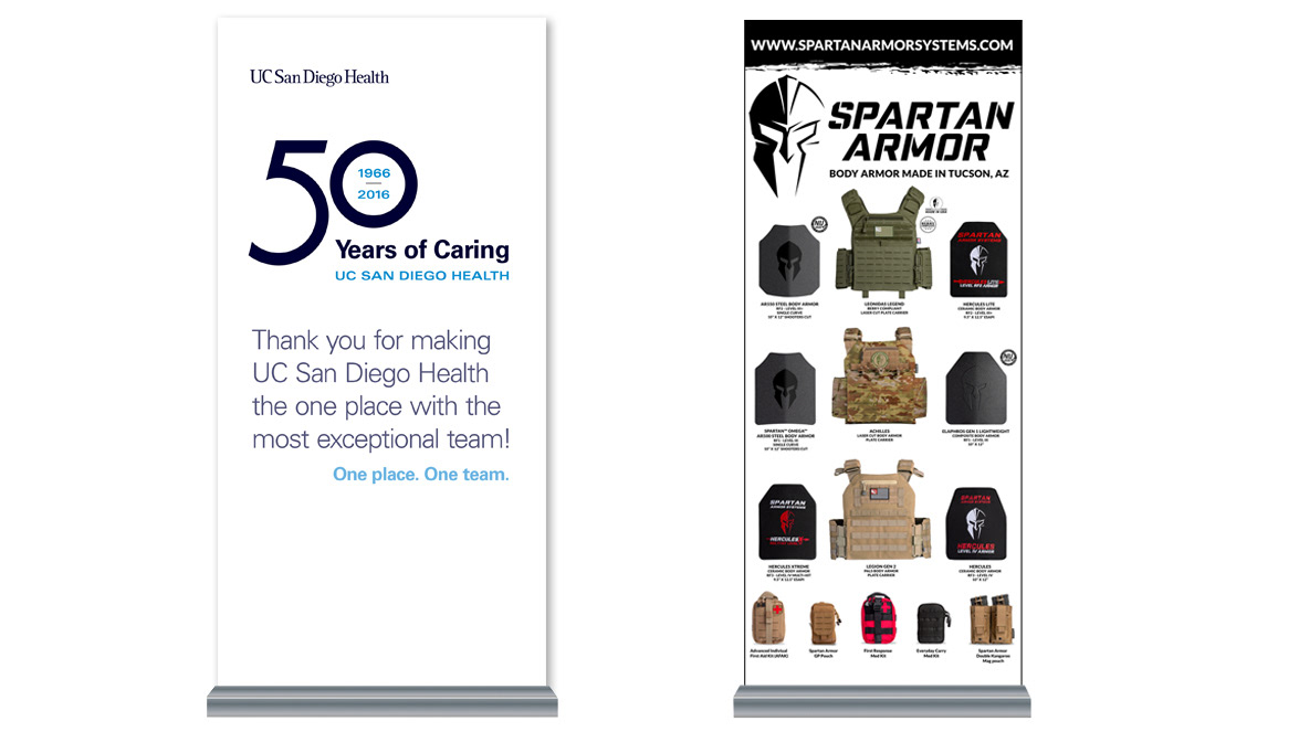 Artwork for pull-up banners ranging in size from 35- to 48-inches wide and 80-inches tall.