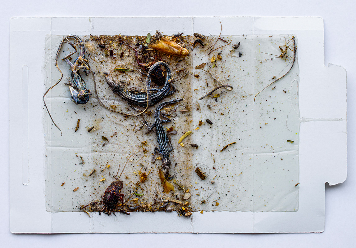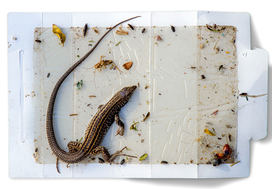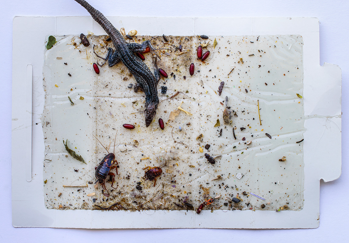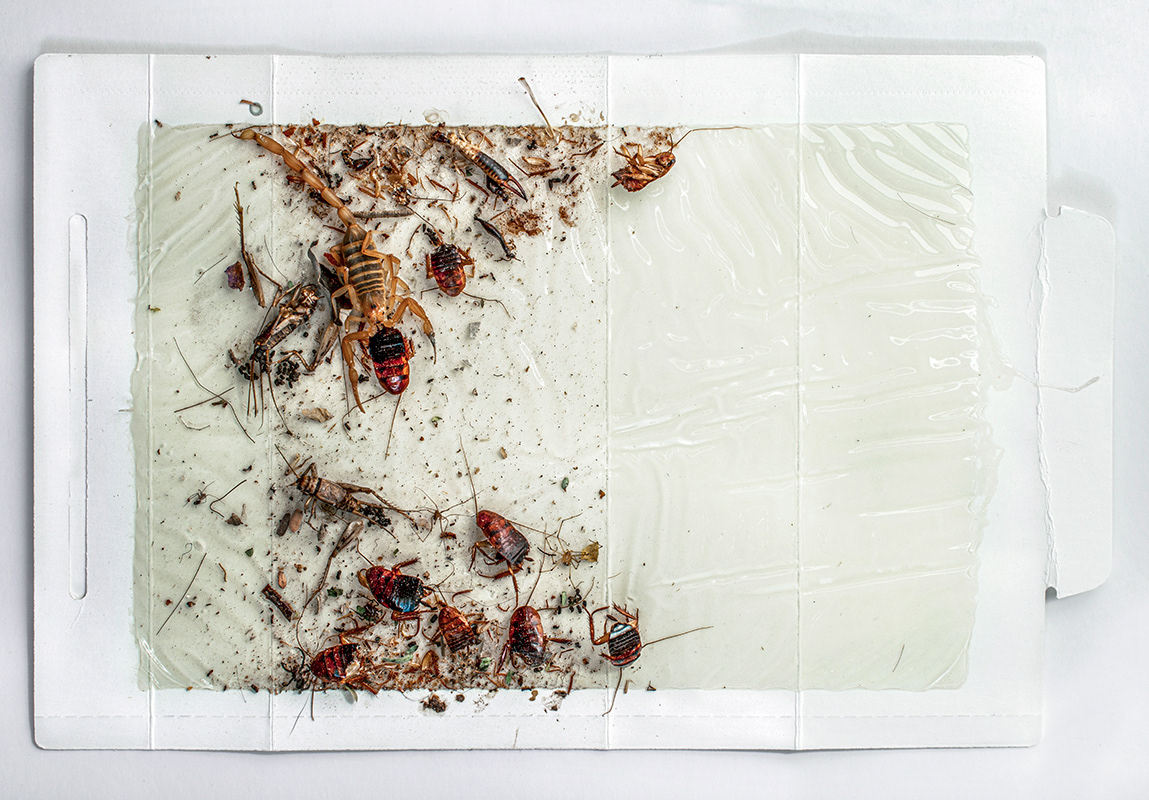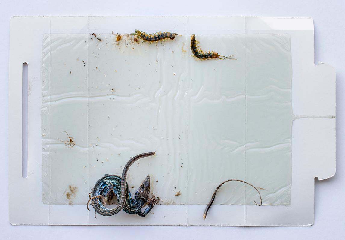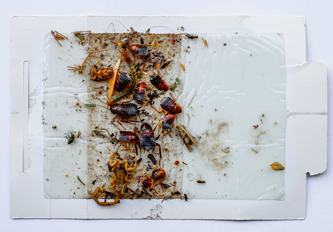 A series of images of the creatures caught in the glue of a scorpion trap. I place these traps by my garage door and this is what gets caught.